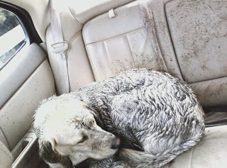 I love it when life hands me a real situation that serves as inspiration for writing a poem. A few years ago my daughter’s Yellow Lab Jack was taken to a special park where dogs are allowed to run around unleashed. Jack, as usual, acted up. He went into a muddy pond…and then refused to come out. I wrote a triolet about his experience.