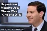 FYI: Back in June of 2011, Halperin was suspended by MSNBC after he called President Obama “kind of a dick” on Morning Joe. He reportedly quickly apologized. Halperin, who was an editor at large for Time then, said, “I thought he was a kind of a dick yesterday”–referring to the president’s conduct during a press conference.