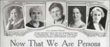 In Canada, the question of whether or not women are persons was unequivocally settled in 1929, but it took the determined efforts of five remarkable women to win a ruling on appeal to their highest court that yes, women ARE persons.