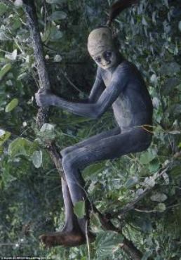 - Child of one of the Ethiopian Omo tribes among the trees http://www.dailymail.co.uk/news/article-2294456/Painted-faces-scarred-bodies-wooden-guns-extravagant-headdresses-Amazing-photographs-reveal-lost-world-Omo-tribes-Ethiopia.html