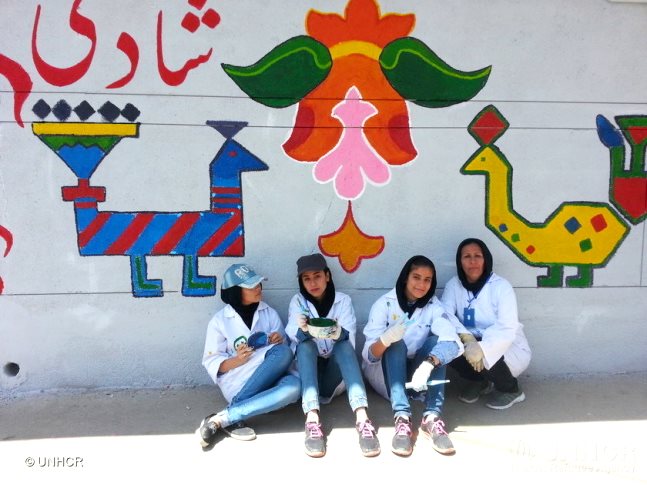 A coalition fostered by the UNHRC and the Iranian government is making a difference. Working together with local artists, Afghan refugees and their Iranian neighbors – more than 60 community volunteers and students from both groups – paint over walls tagged with angry hate-filled messages. The new murals feature beautiful designs from Iranian and Afghan carpets, as well as other cultural symbols. Volunteers also pick up the trash.
