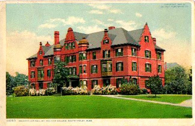 - 1908 postcard of original Rockefeller Hall at Mount Holyoke