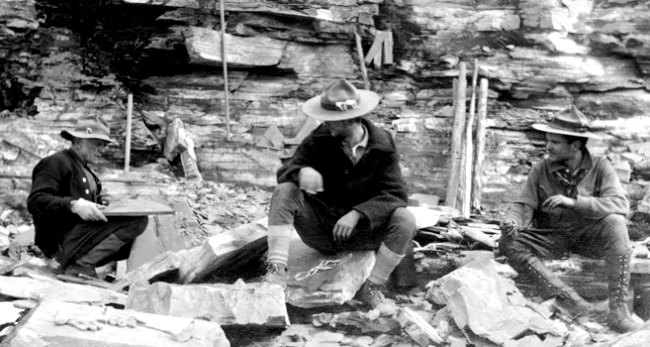 - Charles (left) with Sidney and Stuart Walcott at Walcott Quarry, 1913