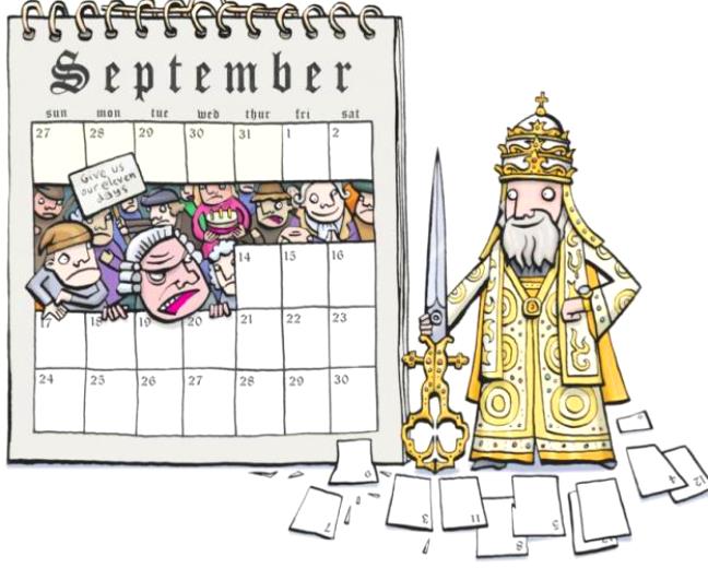 1752 – British Calendar Act of 1751: the Gregorian calendar * becomes the official calendar of Britain and its American colonies in 1752, replacing the Julian calendar. However, there’s an eleven day difference between the two calendars, so on the evening of 2nd September 1752, Britain and the colonies went to sleep on 2nd September and woke the next morning on 14th September. New Year’s Day moved to 1st January from 26th March. Some citizens felt cheated and rioted, demanding their eleven days back!