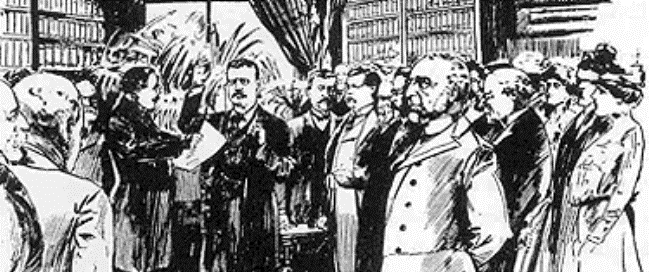 - Theodore Roosevelt sworn in as president, electing not to use a bible