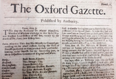 1665 – The London Gazette, the oldest surviving journal, is first published as The Oxford Gazette (it was renamed the following year)