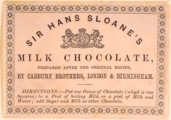 - ‘Sir Han Sloane’s Chocolate’ – Cadbury Brother’s wrapper