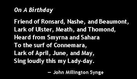 - On a Birthday, poem by John Millington Synge