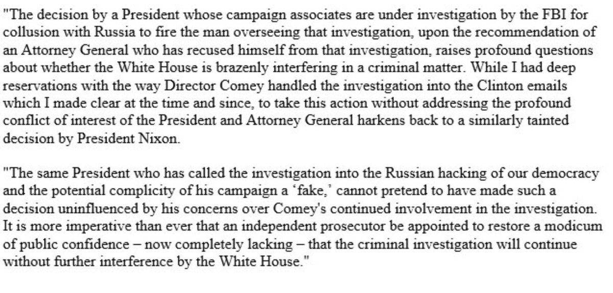 President Trump fired FBI Director James Comey citing his handling of the investigation into Clinton’s emails. Here’s what he said in 2016. pic.twitter.com/xJiGylkfgt