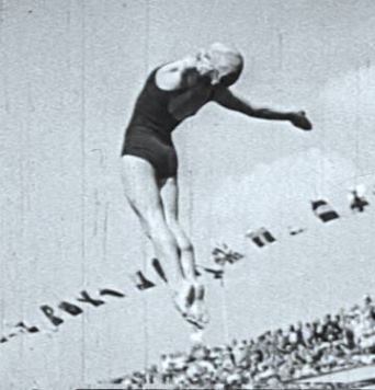 Katherine Rawls in pike dive at 1936 Berlin Olympics