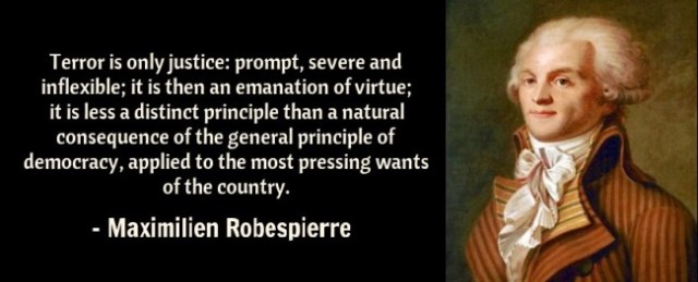 1794 – Maximilien Robespierre, “soul” of the French Revolution’s Reign of Terror, is arrested, and condemned to La Guillotine, as 17,000 “enemies of France” had been condemned by his committee during the 11 months of the Terror; his supporters are declared outlaws – only verification of their identity is required after capture before they are executed without trial