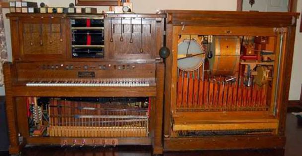 The American Fotoplayer was developed by the American Fotoplayer Company, and introduced in 1912. The Fotoplayer is a type of player piano that was especially created to provide sound effects for silent movies during the early 19th century.
