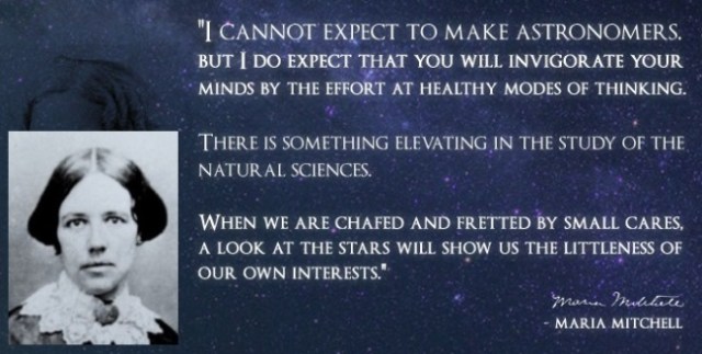 1818 – Maria Mitchell born, American astronomer and academic, discoverer of a comet, first American woman paid professional astronomer; first woman elected Fellow of the American Academy of Arts and Sciences; Vassar College professor of astronomy (1865-1888) – when she found out she was paid less than younger male professors, she insisted on and got a salary increase; abolitionist (refused to wear cotton clothing until after the Emancipation Proclamation) and suffragist, friend of Elizabeth Cady Stanton