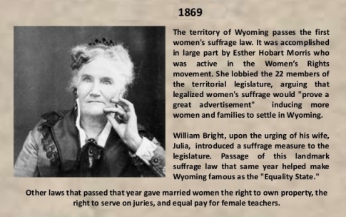 1814 – Esther Hobart Morris born, abolitionist; first female U.S. Justice of the Peace, in Wyoming, appointed to replace the previous justice after he resigned in protest over Wyoming extending suffrage to women