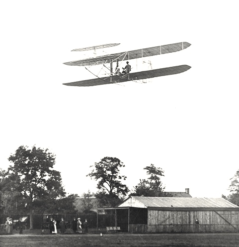 1908 – Wilbur Wright makes his first public flight at a Le Mans, France racecourse