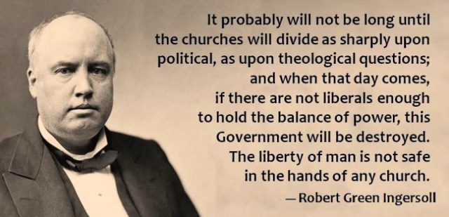 1833 – Ingersoll Day * – Robert G. Ingersoll born, “The Great Agnostic,” politician and famous orator, advocate for separation of church and state, free thought, and humanism. Gave the eulogy at his friend Walt Whitman’s funeral. “There are in nature neither rewards nor punishments, there are consequences.”