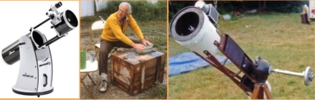 Manufactured Dobsonian telescope – John Dobson hand-grinding lens – Home-made Dobsonian