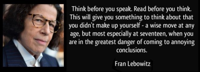 1950 – Fran Lebowitz born, American author and public speaker, known for her sardonic social commentary