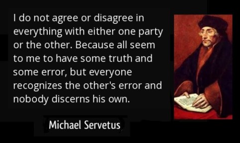 1553 – Spanish polymath (physician, scientist, mathematician, theologian and cartographer among many avocations) Michael Servetus is tried in Geneva and burnt at the stake with his books for heresy on 40 different charges, but primarily because he denied the Trinity and was against infant baptism. Although Servetus was condemned by the Geneva Council of 25, the main evidence against him was provided by John Calvin and his followers.