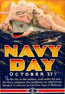 1922 – The Navy League of the United States organizes the first Navy Day * – October 27 was chosen because it is the birthday of President Theodore Roosevelt, who had been an Assistant Secretary of the Navy and supported a strong Navy. It’s also the anniversary of a 1775 report issued by a Continental Congress special committee favoring the purchase of merchant ships as the foundation of an American Navy