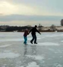 - Father skating with daughter on lake ice