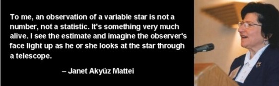 1943 – Janet Akyüz Mattei born in Turkey, American astronomer; director of the American Association of Variable Star Observers (AAVSO – 1973-2004), collecting amateur astronomers observations of variable stars and coordinating them in a program with professional astronomers; the resulting database made available to educators to encourage student science projects; winner of the 1987 Centennial Medal of the Société Astronomique de France 1987;1993 George Van Biesbroeck Prize, American Astronomical Society; in 1995, won the first Giovanni Battista Lacchini Award for collaboration with amateur astronomers, Unione Astrofili Italiani; and the 1995 Jackson-Gwilt Medal of the Royal Astronomical Society