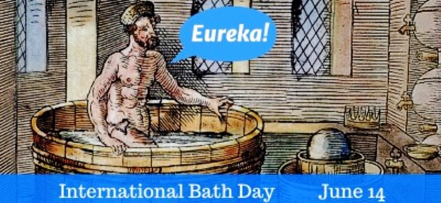 2016 – International Bath Day * is launched to celebrate the legend of a major discovery in 260 BC, on what is now June 14, by Archimedes. While taking a bath, Archimedes realizes that an object’s volume could be accurately measured by being submerged in water. Unable to contain his excitement, Archimedes leaps out of the bathtub yelling “Eureka, Eureka!”