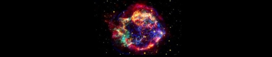 Image composited of data from three sources. Red is infrared data from the Spitzer Space Telescope, orange is visible data from the Hubble Space Telescope, and blue and green are data from the Chandra X-ray Observatory. The cyan dot just off-center is the remnant of the star’s core.