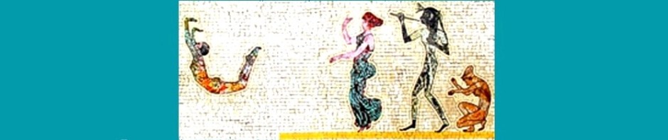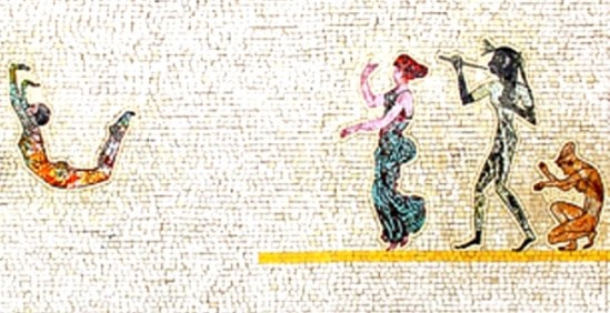 A section from Artemis, Acrobats, Divas and Dancers (2001), a glass and ceramic mosaic on NY subway platform walls at the Lincoln Center station