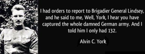 1918 – Alvin C. York Day * U.S. Corporal Alvin York captures 132 German soldiers almost single-handedly in the Argonne Forest. He’s promoted to Sergeant, and awarded the Medal of Honor
