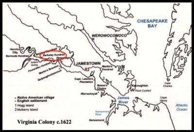 1619 – Thirty-eight colonists arrive at Berkeley Hundred, on the north bank of the James River in Virginia. One of their leaders, John Smyth of Nibley, collects 60 documents concerning the settlement of Virginia which survive as important sources for modern historians