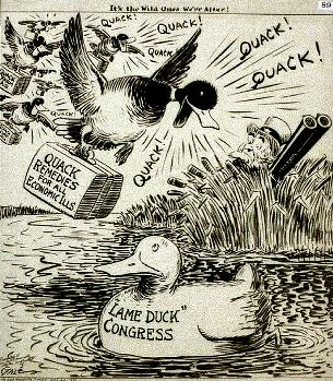 1933 – Lame Duck Day * salutes the 20th Amendment to the U.S. Constitution, which shortened the length of time that outgoing Presidents still have the powers of their office, including making nominations, and for outgoing members of Congress to have voting powers to approve laws, and in the Senate, to approve nominees from the Executive Branch. A “lame-duck session” happens when Congress meets after an election, and these now last from the November elections until January 2 of the following year. Previously, newly elected Presidents and Congress members weren’t sworn in until March 4th. The U.S. Secretary of State proclaimed the ratification of the amendment on February 6, 1933
