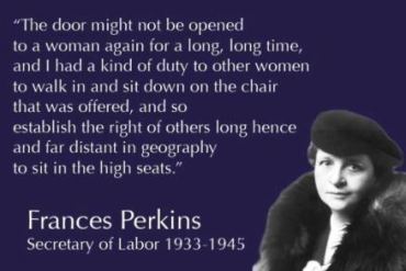 1933 – Frances Perkins is appointed Secretary of Labor becoming the 1st woman to serve in a U.S. Cabinet position