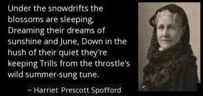 1836 – Harriet Prescott Spofford born, American author and poet, began writing to earn money when her parents became ill; wrote Gothic romances and detective stories