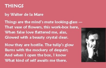 1873 – Walter de la Mare, prolific English poet, short story writer, and novelist ; best remembered for his poem, ‘The Listeners’ and his subtle psychological horror stories