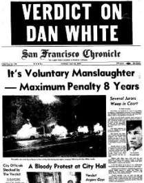 1979 – Former San Francisco City Supervisor Dan White is convicted of voluntary manslaughter rather than murder for killing Mayor George Moscone and Supervisor Harvey Milk. White only served five years of a seven-year prison sentence