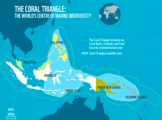 2012 – Coral Triangle Day * is first observed by the member countries (Indonesia, Malaysia, Philippines, Papua New Guinea, Solomon Islands, and East Timor) of the Coral Triangle Initiative on Coral Reefs, Fisheries and Food Security (CTI CFF) to raise awareness of the threat to this epicenter of marine biodiversity. 76% of all known coral species, 37% of all known coral reef fish species, 53% of the world’s coral reefs, the greatest extent of mangrove forests in the world, and spawning and juvenile growth areas for the world’s largest tuna fishery are all found in the Coral Triangle