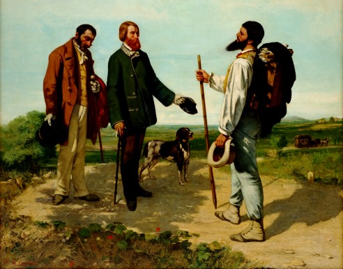 La rencontre, ou Bonjour Monsieur Courbet, Gustave Courbet self-portrait on right