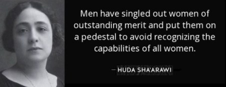 1879 – Huda Sha’arawi born, pioneering Egyptian feminist leader and nationalist; she spent her childhood secluded in a harem, then at age thirteen was given in marriage to her cousin, but they separated, and she had the opportunity to learn from female teachers to read the Quran, and studied Islamic subjects. She wrote poetry in Arabic and French. Sha’arawi resented the restriction of women to the house or harem, and organized lectures for women-only audiences. Many of the women from wealthy families who attended were in a public place for the first time in their lives. Sha’arawi raised money to help poor Egyptian women, and founded a school for girls, where the emphasis was on academic subjects. After WWI, she helped organize the largest demonstration by women against British rule. Sha-awarwi decided to stop wearing her veil in public after her husband’s death in 1922. By the 1930s, most of the women in Egypt had followed her example. She was one of the founders of Mubarrat Muhammad Ali, a women’s social service organization in 1909, and the Union of Educated Egyptian Women in 1914. In 1923, she founded and was the first president of the Egyptian Feminist Union, publishing the feminist magazine L’Egyptienne