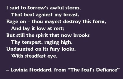 1787 – Lavinia Stoddard born, American poet and co-founder with her husband, Dr. William Stoddard, of an academy (1812-1818) in the village of Troy, New York, before she contracted consumption (tuberculosis). She and her husband went to Alabama, hoping the warmer climate would restore her health, but she died in 1820. Her best-known poem is “The Soul’s Defiance”