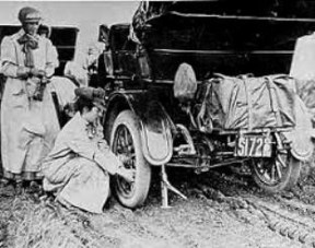 Alice Huyler Ramsey changing a tire