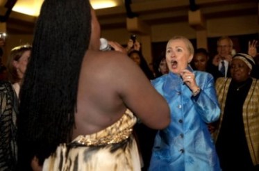 2012 – Secretary of State Hillary Clinton, a guest of honor at a dinner hosted by South African Foreign Minister Maite Nkoana-Mashabane in Johannesburg, was one of the first people out on the dance floor, laughing with jazz singer Judith Sephuma as they tried to outdo each other in dance moves. This was a break from serious business; Clinton was attending a conference on stopping the spread of AIDS in South Africa, which has the highest HIV infection rate in the world