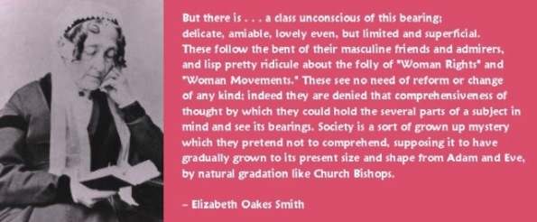 1806 – Elizabeth Oakes Smith born, prolific American author, poet, lecturer and women’s rights activist; one of the speakers at the Seneca Falls Convention, but has been largely forgotten. She is notable for “Woman and Her Needs,” a series of essays published in the New York Tribune between 1850 and 1851 that argued for woman’s spiritual and intellectual capacities and woman’s rights to economic and political opportunities, including a right to higher education and the right to vote