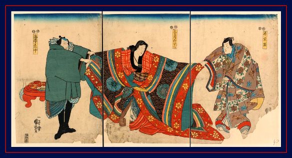 Taira no Munemori, Mikazuki Osen, and Ebizako no Ju), painted by Utagawa Kuniyoshi