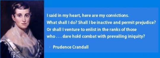 1803 – Prudence Crandall born, American educator, establishes a private school for girls which is boycotted when she admits an African American student; considered the first integrated classroom in the U.S.; official State Heroine of Connecticut