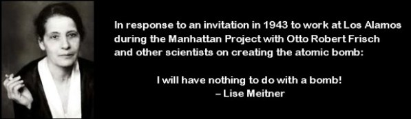 1878 –Lise Meitner born in Austria-Hungary, Austrian-Swedish physicist; co-leader with Otto Hahn of the scientists who discovered the nuclear fission of uranium when it absorbed an extra neutron, a process which was the basis of the WWII nuclear weapons developed by the U.S. at Los Alamos. She was forced to leave Nazi Germany in 1938, and went to Sweden. In 1966, she shared the Enrico Fermi Award with Otto Hahn and Fritz Strassmann for their joint research which led to uranium fission