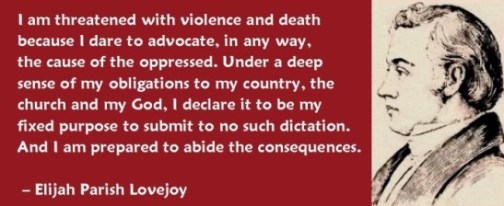 1802 – Elijah Parish Lovejoy born, American Presbyterian minister, newspaper editor and abolitionist, is murdered by a pro-slavery mob in Alton Illinois during an attack on his printing press, to destroy it and his abolitionist newspaper