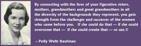 1929 – Polly Welts Kaufman born, American historian, teacher and activist for equality, noted for her many books on women’s history, including National Parks and the Woman’s Voice, Women Teachers On the Frontier, and Apron Full of Gold. After graduating from Brown University in 1951, she was asked in her interview for a high school teaching job in Rhode Island if she was married or going to be married, then told to look elsewhere for employment when she said “Yes.” Kaufman was an a civil rights activist for school desegregation, and ran a program insuring that for the first time, over 100 public schools had books by African American authors and books on black history. She taught women’s history for over 20 years, at the University of Massachusetts Boston and at the University of Southern Maine