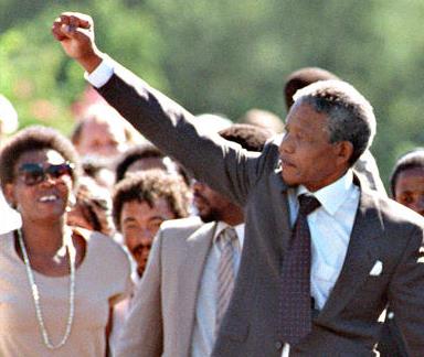 1990 – Nelson Mandela is released from Victor Verster Prison outside Cape Town, South Africa after 27 years as a political prisoner
