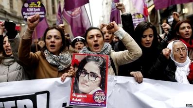 2015 – Özgecan Aslan, a 19-year-old Turkish university student is murdered when she tries to use pepper spray fend off being raped by three men, including the bus driver, aboard a minibus in Mersin, Turkey. When her burnt body, with its hands cut off, is found on February 13, it sparks days of nationwide protests and public outcry over violence against women. The three perpetrators are convicted of a “monstrous and torturous homicide” and sentenced to life imprisonment without possibility of parole